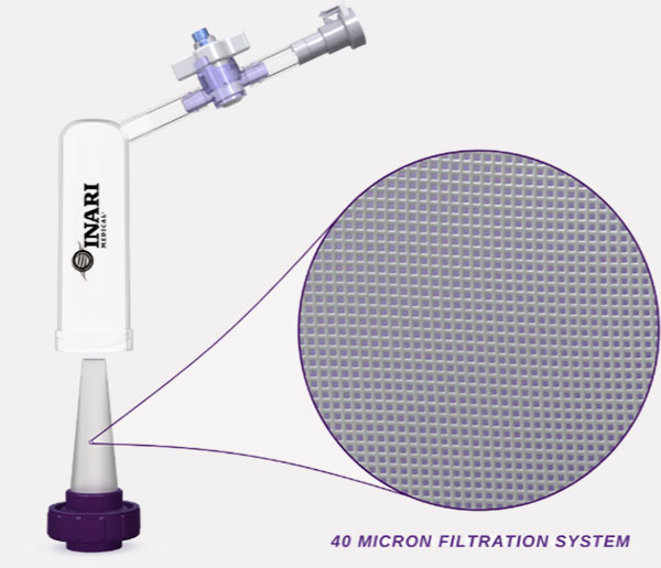 El FlowSaver es compatible con los catéteres Triever e incluye un sistema de filtración de 40 micras, un depósito de coágulos y una jeringa de recolección de 60 cc. El diseño de filtración accesible permite el examen de coágulos y la limpieza del depósito para más filtraciones. La sangre filtrada se puede reintroducir usando un luer lock estándar con la jeringa de recolección de 60 cc.